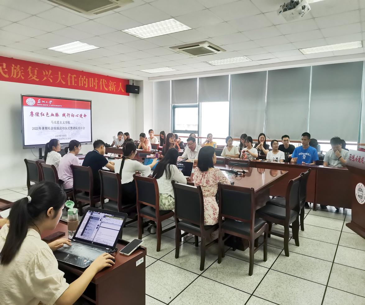 7月8日,苏州大学马克思主义学院于独墅湖校区606幢6418会议室成功举办了主题为“赓续红色血脉,践行初心使命”2021年暑期社会实践启动仪式暨团队培训会。苏州大学马克思主义学院党委书记陈建军、团委书记金鑫以及学院2021年暑期社会实践各团队成员参加了此次会议。本次活动由苏州大学马克思主义学院党委组织,马克思主义学院团委、研究生党支部、院学生科技协会、院研究生会承办,会议由2020级硕士研究生姚彭梦迪主持。