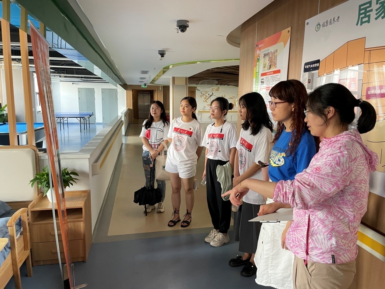 跟随着社区工作人员董茜茜的步伐,宣讲团参观了社区为居民们提供的服务场所。多彩、活泼的儿童活动室开设了玩具区、读书区、动手实践区,为社区的家长和儿童提供了安全、便利的成长教育环境;安静、整洁的红色阅览室里,图书分类有序,老人、小孩和年轻人都能在阅读的乐趣中汲取到“红色的养分”。由于潼泾一社区居民中老年人占比很高,街道处牵头建设的综合为老服务中心发挥了很大的作用,幸福助餐、老年大学、养老床位、家居适老化智能改造......成功为老年人打造了“720度”立体综合养老服务中心,也让宣讲团成员们感受到了社区为居民做实事的诚心实意。最后,董茜茜还带领实践团队参观了社区居民楼道的垃圾分类宣传栏,团队成员注意到,每个单元的楼门上都张贴了开展党员集体学习的宣传通知,提升了党史学习教育的实效性。