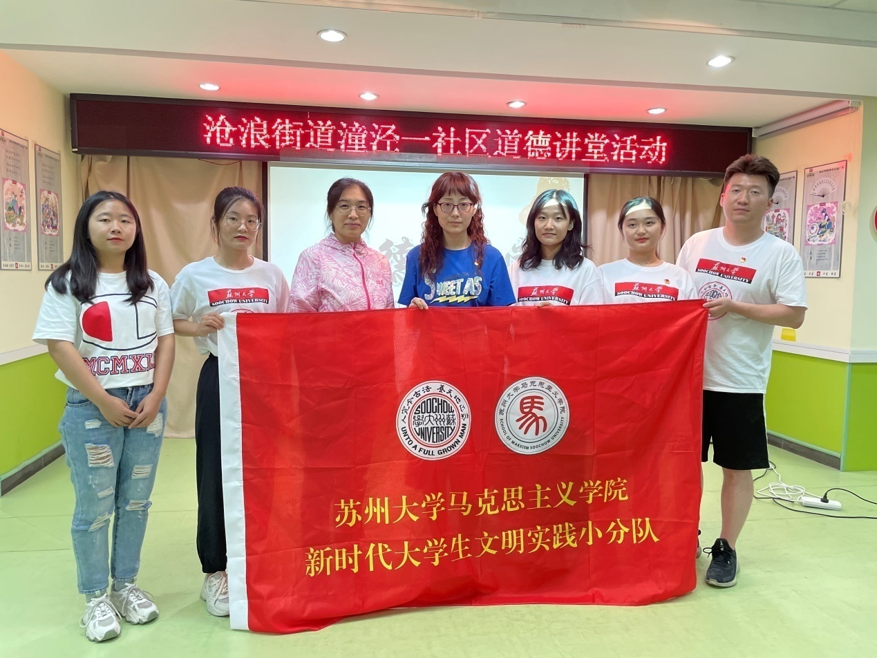 为推动习近平总书记在庆祝中国共产党成立100周年大会上的重要讲话精神入脑入心入言入行,更好地开展党史学习教育,苏州大学马克思主义学院“习近平总书记关于党的历史的重要论述”研究生宣讲团于7月14日赴姑苏区潼泾一社区开展“联学共建 青进社区”主题实践活动。