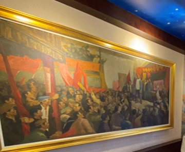 左图为:第一展厅中的主题概况 右图为:工人大罢工中的场景