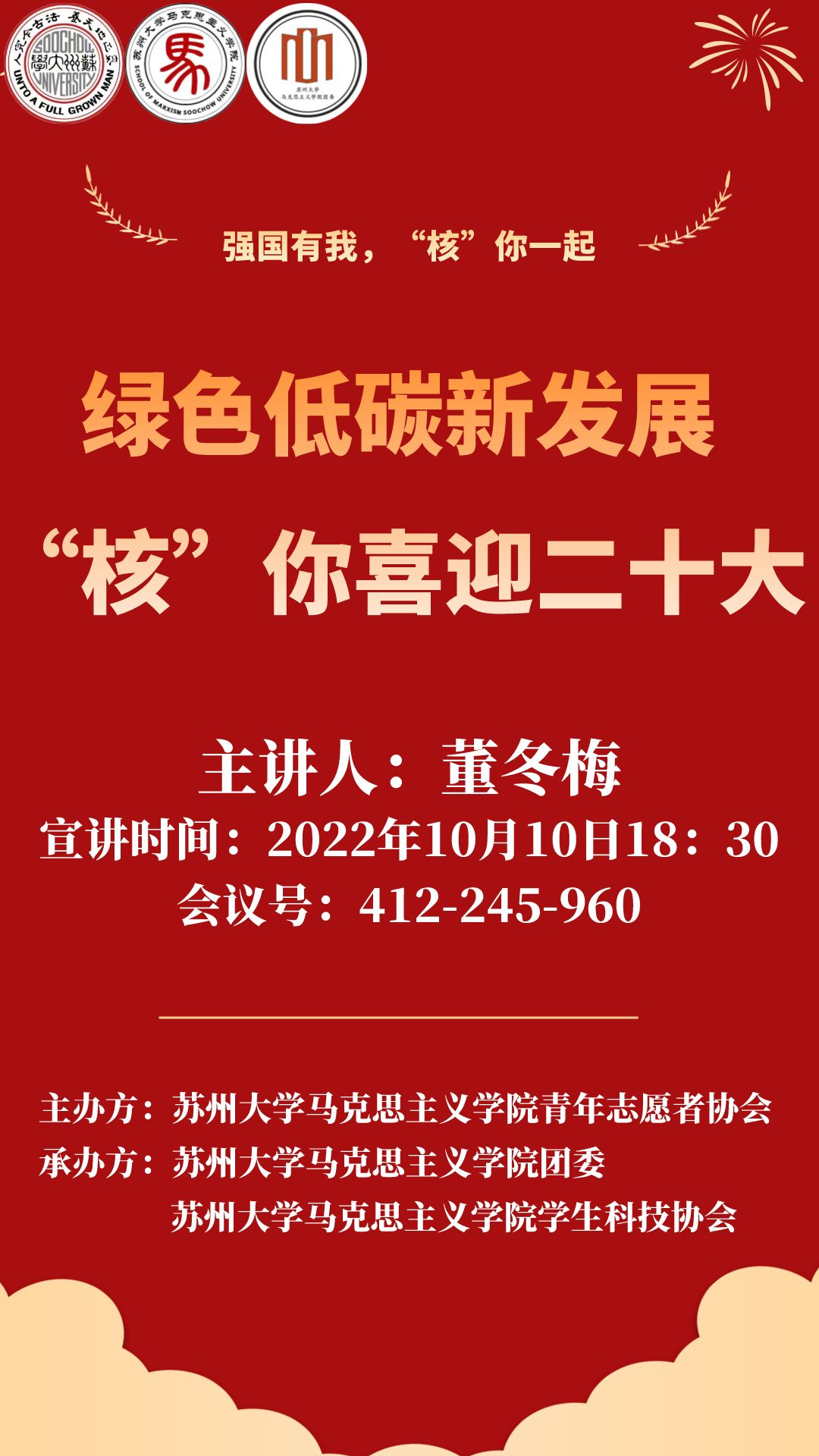 “强国有我‘核’你一起”⑯│苏州大学马克思主义学院青年志愿者协会宣讲团举行“绿色低碳新发展,‘核’你喜迎二十大” 主题宣讲