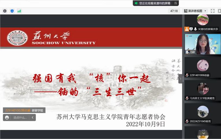 “强国有我‘核’你一起”⑭│苏州大学马克思主义学院青年志愿者协会宣讲团举行“铀的‘三生三世’”主题宣讲