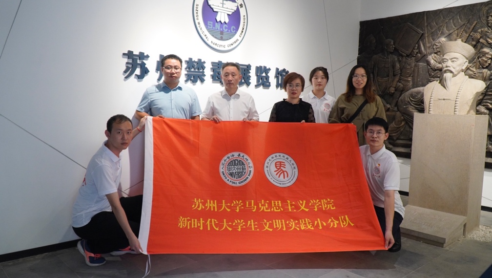 为深入学习贯彻习近平总书记关于禁毒工作的重要指示精神,全面了解苏州禁毒工作历程与成就,近日,苏州大学马克思主义学院“百名学子看公安”宣讲与调研实践团队走进苏州禁毒展览馆,开展“筑牢禁毒防线,护航青春成长”专题实践活动。苏州大学马克思主义学院院长、全国高校思政课名师工作室(苏州大学“思政田园”名师工作室)负责人田芝健教授,院教学科研办公室主任、行政党支部书记李文娟,“研究生思政课教学改革”行动党支部书记吉启卫老师,师资博士后毛瑞康,以及“百名学子看公安”实践团队成员韩轶、惠欣愉、连焕、刘一凯、李玉柔等参加实践活动。