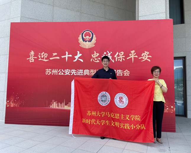 8月12日,“喜迎二十大,忠诚保平安”苏州公安先进典型事迹报告会在苏州市会议中心举办。苏州大学马克思主义学院教学科研办公室主任、行政党支部书记李文娟,“百名学子看公安”宣讲与调研实践团负责人韩轶受邀出席报告会。