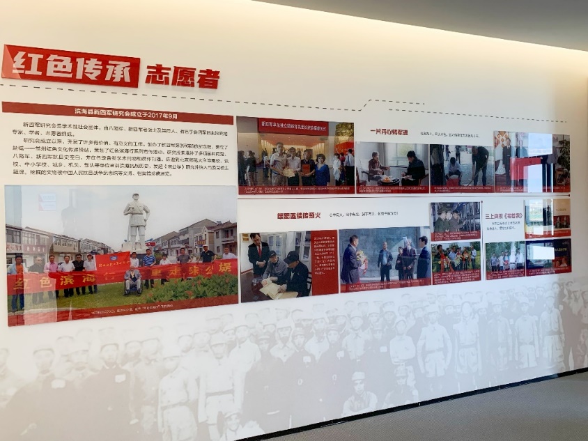 实践中心的各个走廊两侧,都展示着“滨海好人”的先进事迹。“红色基因传承者”徐振理历时39年,跨越万水千山为英烈寻亲,于2021年被评为“中国好人”。同时,徐振理充分发挥自己的“好人力量”,担任红色文化志愿者,用活本地红色资源,结合自身经历讲述红色故事,将榜样力量注入红色宣讲志愿活动,将道德教育与党史学习教育相融合,引领文明新风尚。