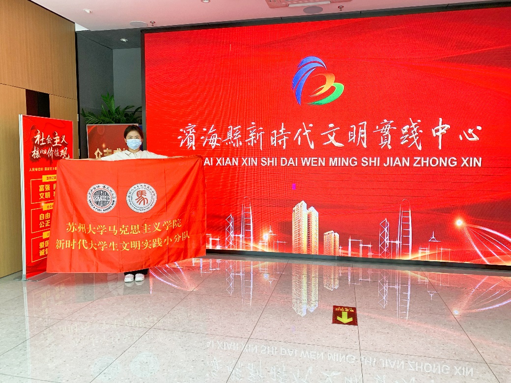 为弘扬红色文化,传承红色基因,8月15日,苏州大学马克思主义学院“研马致行”实践团走进滨海县新时代文明实践中心,依托地方红色资源,开展“高擎‘红色火炬’ 凝聚文明新动能”主题实践活动。团队成员赵皓雅通过实地寻访及拍摄vlog,带领团队成员一起“云寻访”滨海县新时代文明实践中心,寻找滨海红色印记,感受红色火炬照耀下的新时代文明实践建设情况。