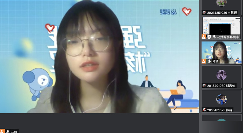 在互动交流环节,与会同学积极参与互动。朱佳丽同学分享了自己所了解到的华龙一号的知识,提出希望从宣讲中了解到关于华龙一号技术方面的知识。王婷同学就“华龙宝宝是什么的化身?华龙宝宝的功能是什么?”做出了阐释。刘思怡同学分析了“华龙一号的推进可以推动哪些方面的发展?”这一问题,马婧针对此答案进行了补充,表明推进华龙一号项目,不仅可以推动热电联供,工业供汽,海水淡化,制氢等方面的发展,并且还能推动混合能源系统的建成,让我们的能源使用更加清洁高效,更好的实现我国“碳达峰、碳中和”的目标。