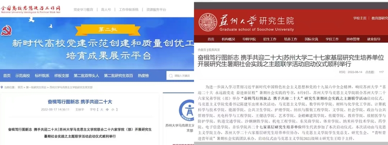 奋楫笃行图新志 携手共迎二十大|苏州大学二十七家基层研究生培养单位研究生暑期社会实践之主题联学活动顺利完成