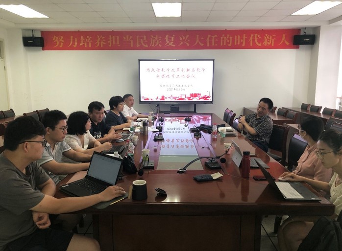 8月5日上午,苏州大学马克思主义学院召开思政课教学改革创新与教学成果培育工作会议。会议特邀教学成果培育与研究专家、苏州大学教育学院唐斌教授到会指导。院长田芝健教授、副院长朱蓉蓉教授,马克思主义理论学科办主任、原理教研室主任张晓副教授、思政名师工作室“行动支部”书记胡绿叶副教授、概论党支部书记罗志勇博士、硕士研究生思政课教研室副主任王慧莹博士、院长助理兼思政课实践教研中心主任孔川副教授、青年骨干教师祁文博、刘晓宁博士等参加本次工作会议。会议由朱蓉蓉主持。