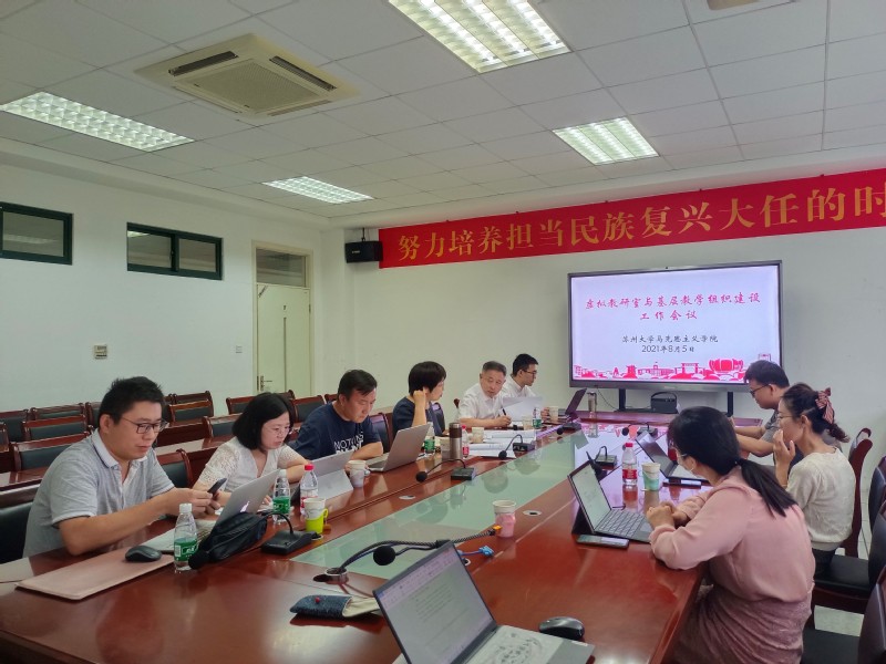 2021年8月5日,苏州大学马克思主义学院召开思政课虚拟教研室与基层教学组织建设工作会议。院长田芝健,副院长朱蓉蓉,概论支部书记罗志勇,原理教研室主任、院学科办主任张晓,思政名师工作室“行动支部”书记胡绿叶,硕士研究生思政课教研室副主任王慧莹,院长助理、思政课实践教研中心主任孔川,师资博士后祁文博、刘晓宁,硕士生王雪参加了会议。会议由田芝健主持。