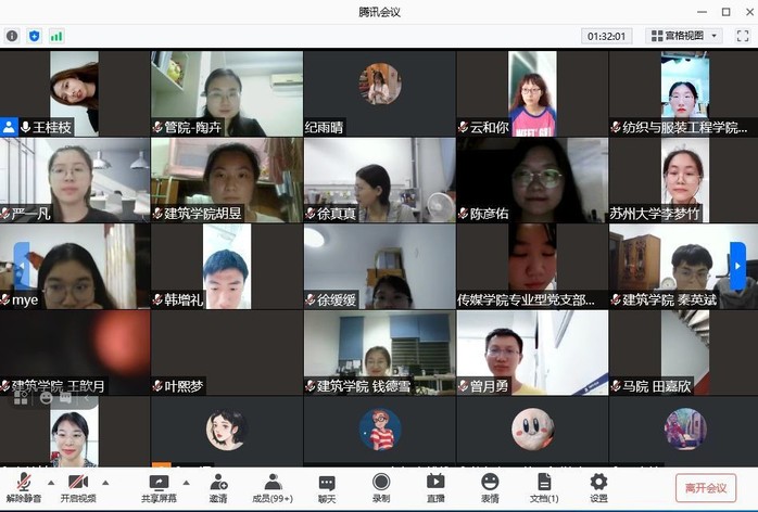 8月18日,苏州大学马克思主义学院联合苏州大学二十家兄弟学院(部)所开展的“学史奋进勇作为 笃行实干报党恩”研究生暑期社会实践之主题联学活动顺利举行第三场。苏州大学金螳螂建筑学院党委书记陈国凤、纺织与服装工程学院党委书记肖甫青、纺织与服装工程学院研究生辅导员蒋闰蕾、政治与公共管理学院研究生辅导员陶卉、马克思主义学院研究生辅导员金鑫出席本次活动,纺织与服装工程学院研究生第一至第六党支部、纺织与服装工程学院学生会(研究生会)功能型党支部及研究生会、传媒学院学术型研究生党支部、专业型研究生党支部及研究生会、金螳螂建筑学院研究生党支部及2020级研究生团支部、政治公共管理学院研究生会及学生代表、马克思主义学院研究生党支部及研究生会参加了本次活动。本次活动由马克思主义学院主办,苏州大学二十家二级学院(部)协办,马克思主义学院“习近平总书记关于党的历史的重要论述”研究生宣讲团、分团委、研究生党支部、院研究生会、思想政治教育研究会承办。会议由马克思主义学院硕士研究生王桂枝主持。
